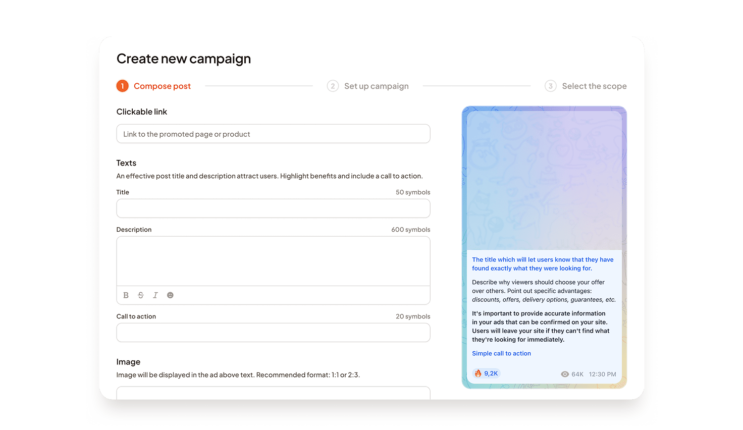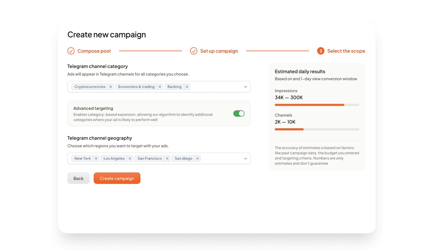 Skip the manual work. Set up your campaign once and launch it across multiple Telegram channels — fast, simple, and fully automated.